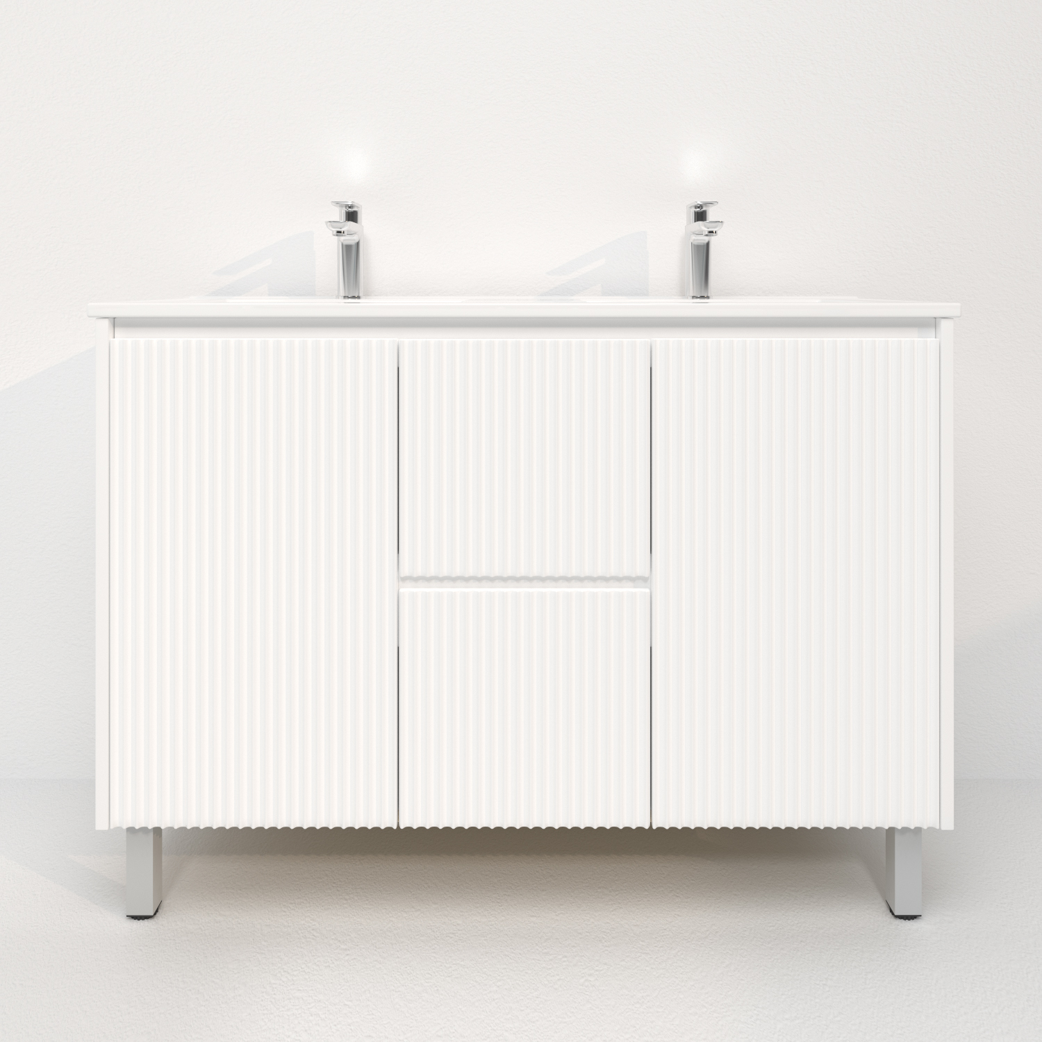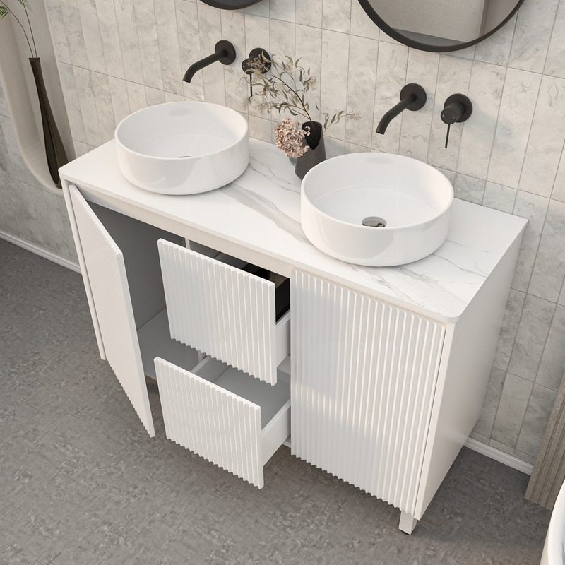 1200mm Brio Fluted Design PVC Matte White Freestanding Elegant Wave-Like Bathroom Vanity Cabinet Only