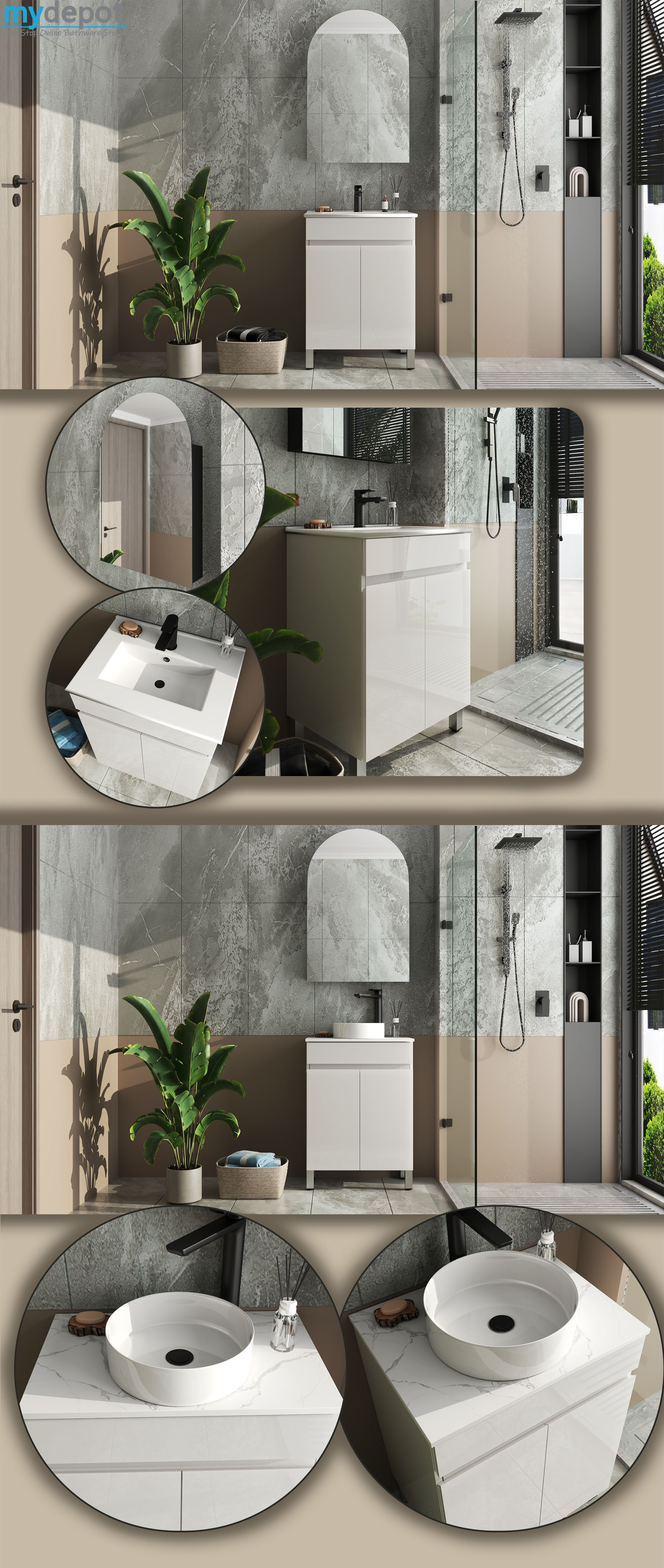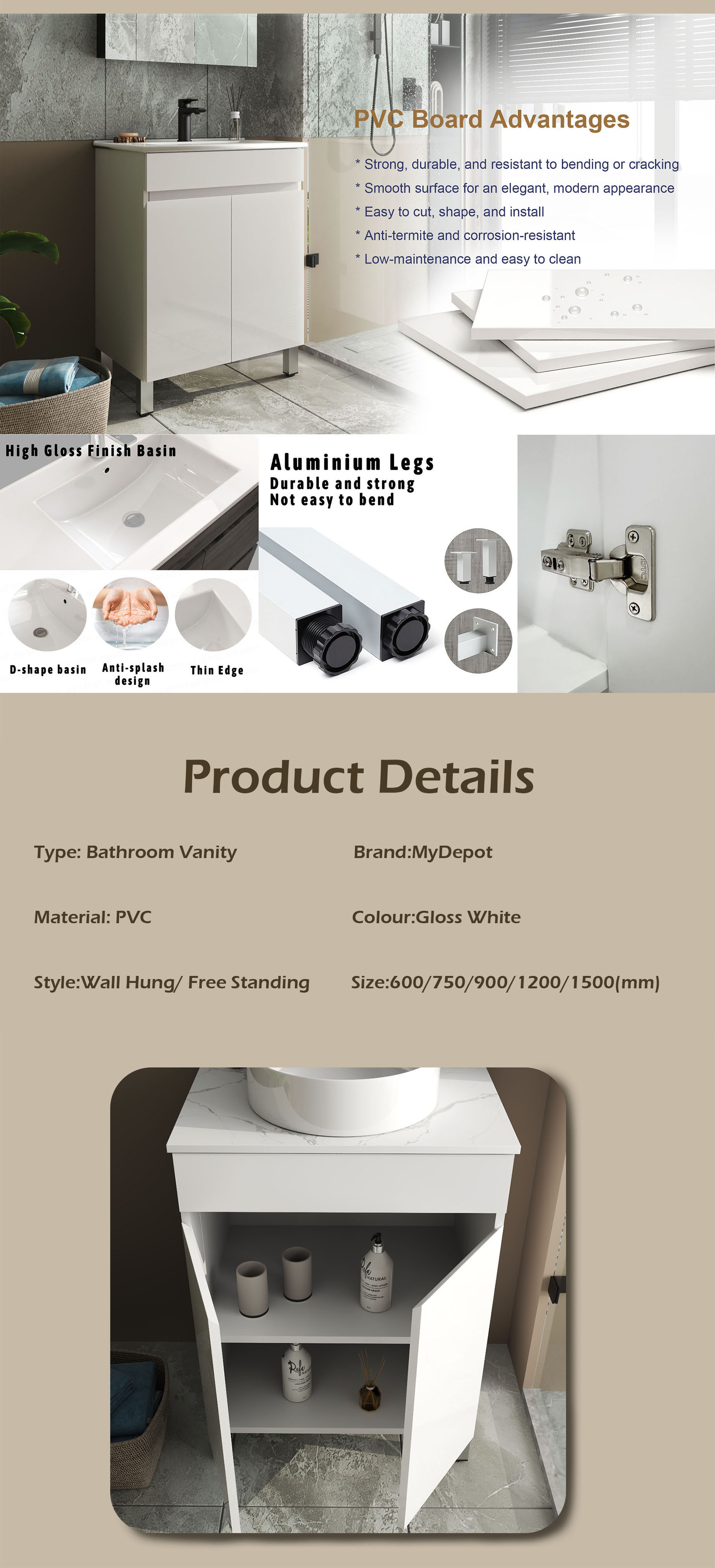 600MM Gloss White PVC Bathroom Vanity 2 Doors Free standing Cabinet Only