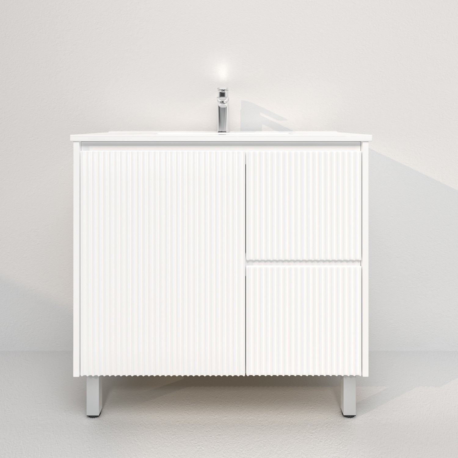 900mm Brio Matte White 2PAC Coating PVC Freestanding Elegant Wave-Like Fluted Design Bathroom Vanity Cabinet Only