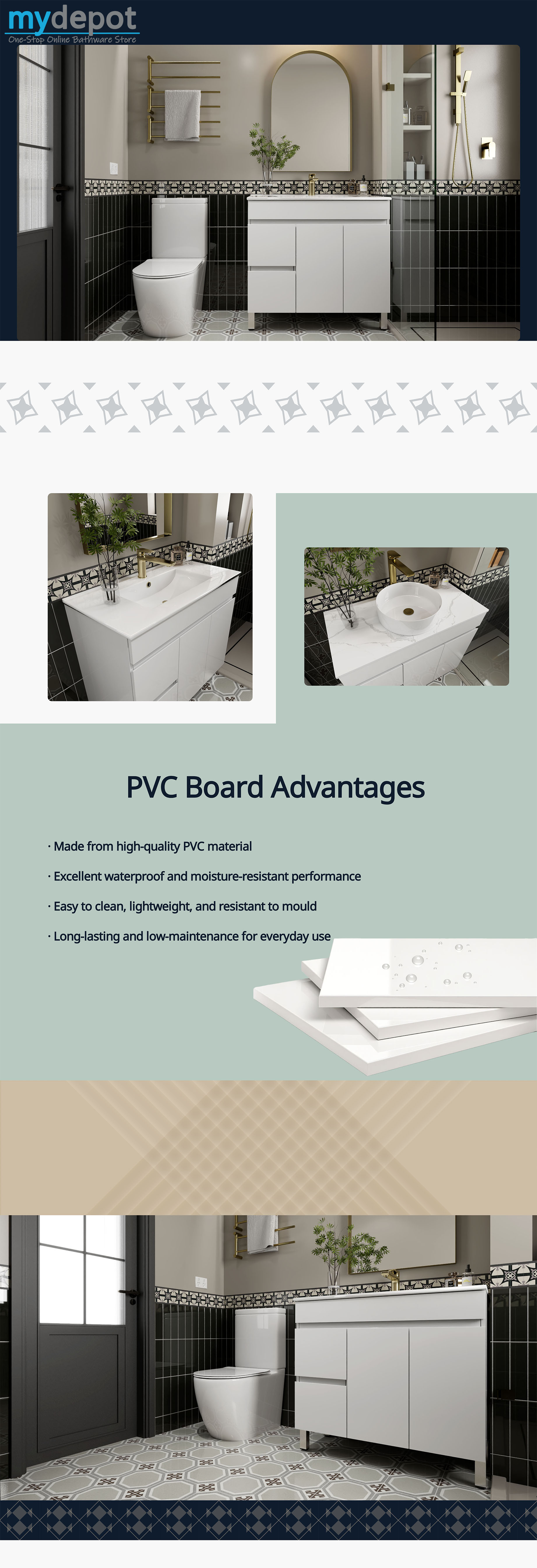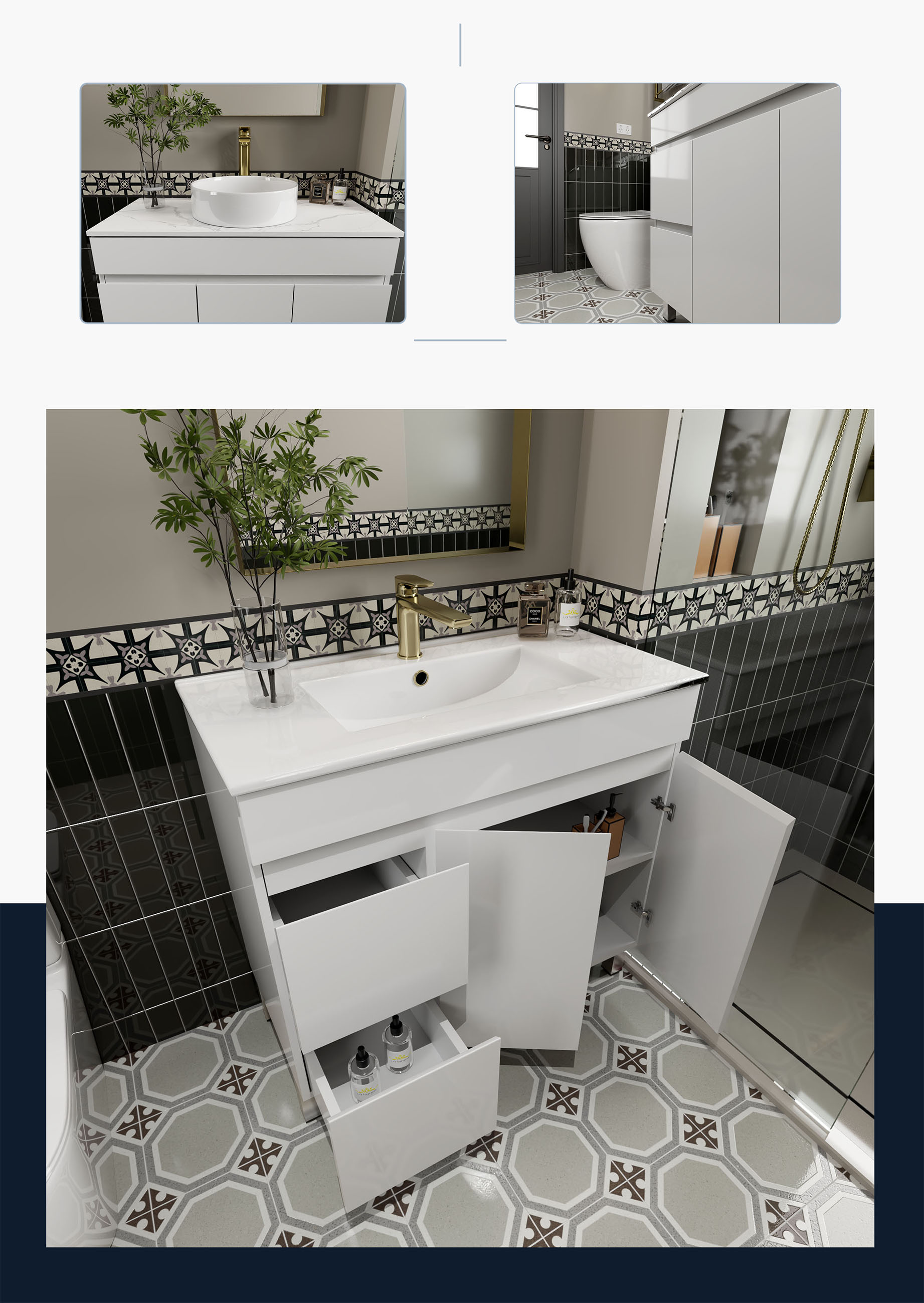 900MM Gloss White PVC Bathroom Vanity Left Drawers Free standing Cabinet Only