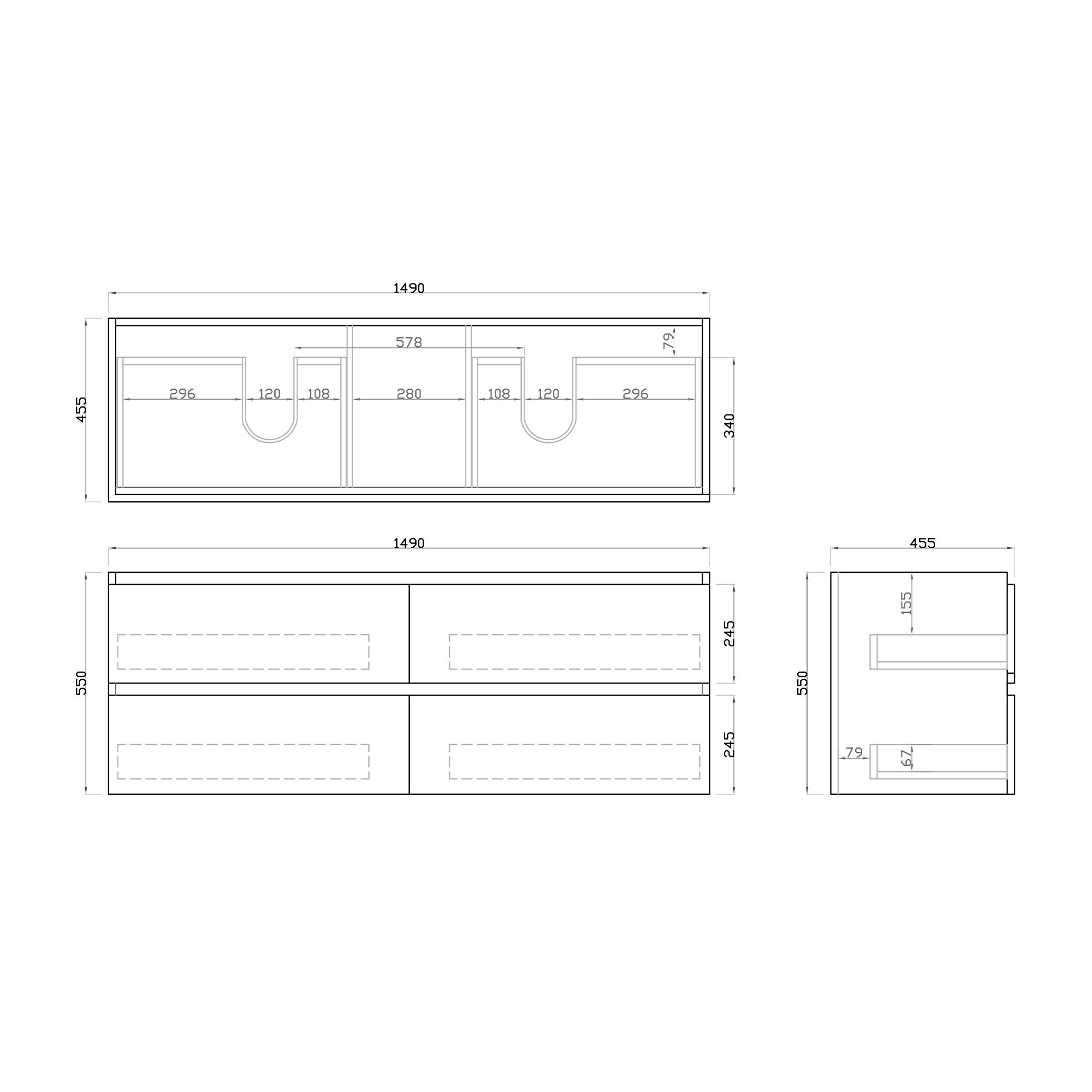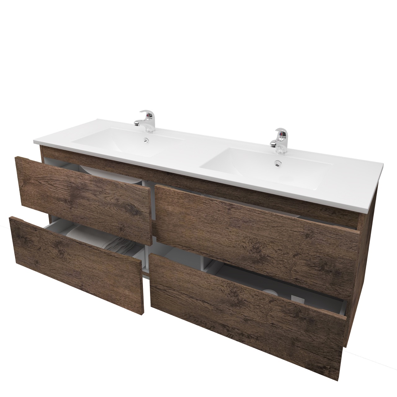 1500mm Dark Oak MDF Bathroom Vanity 4 Drawers Wall Hung Cabinet Only