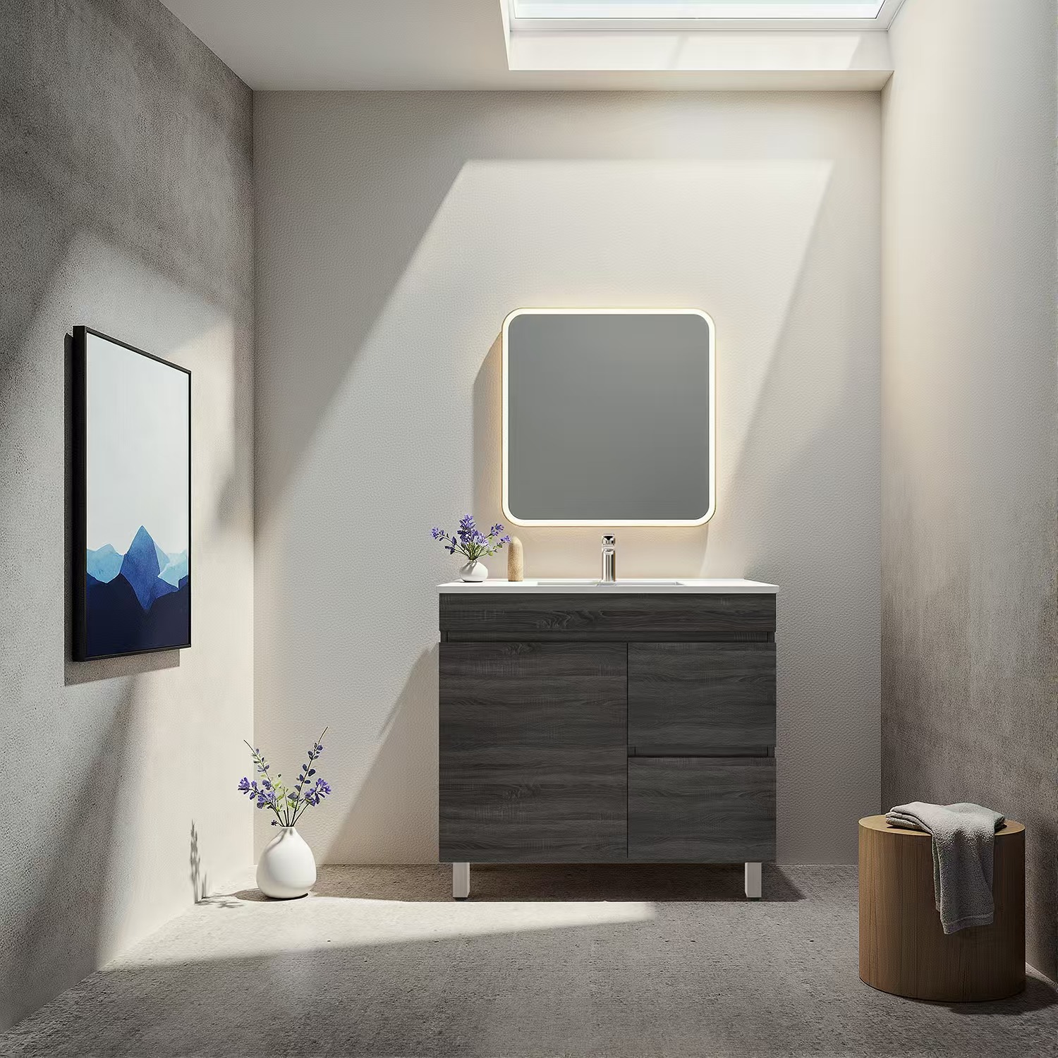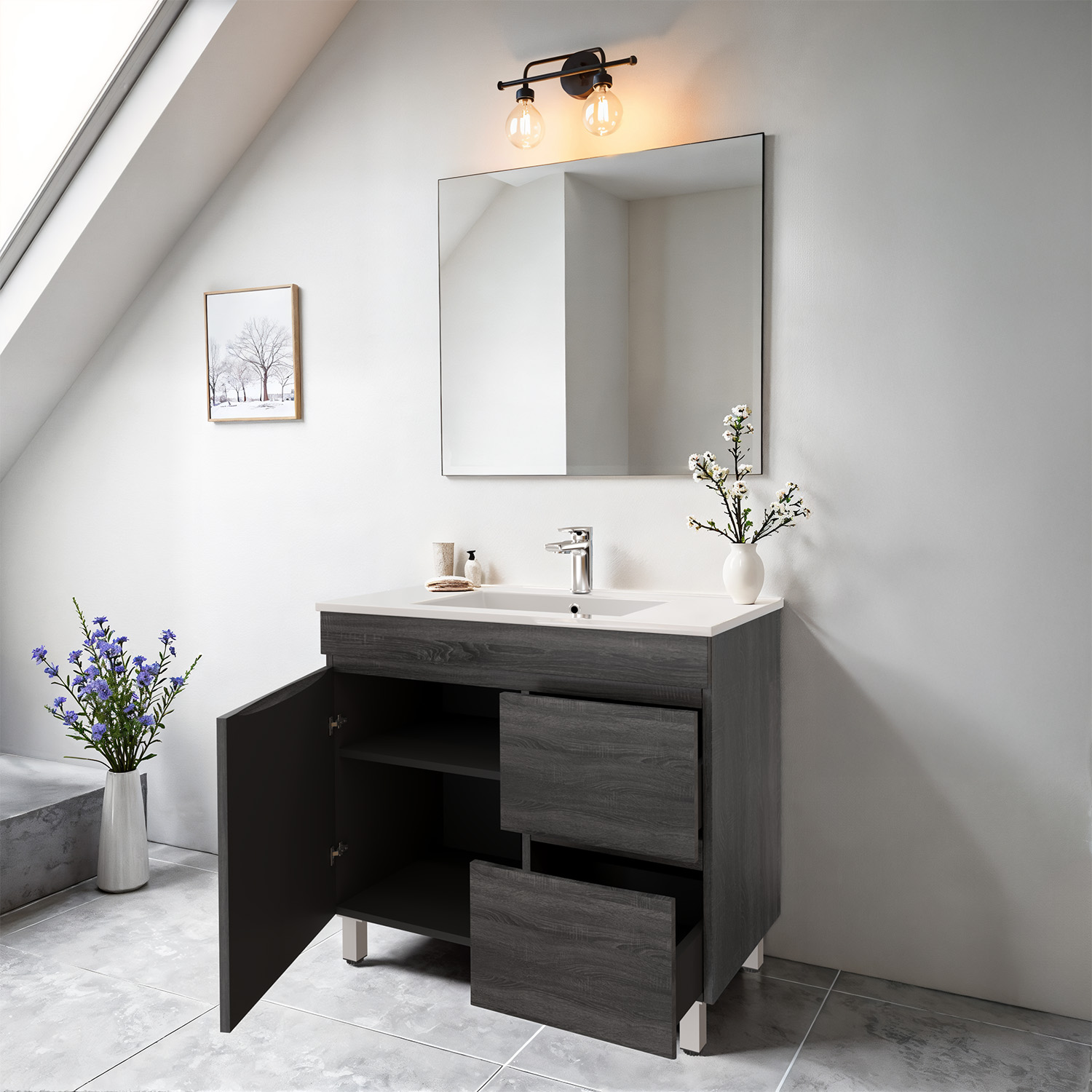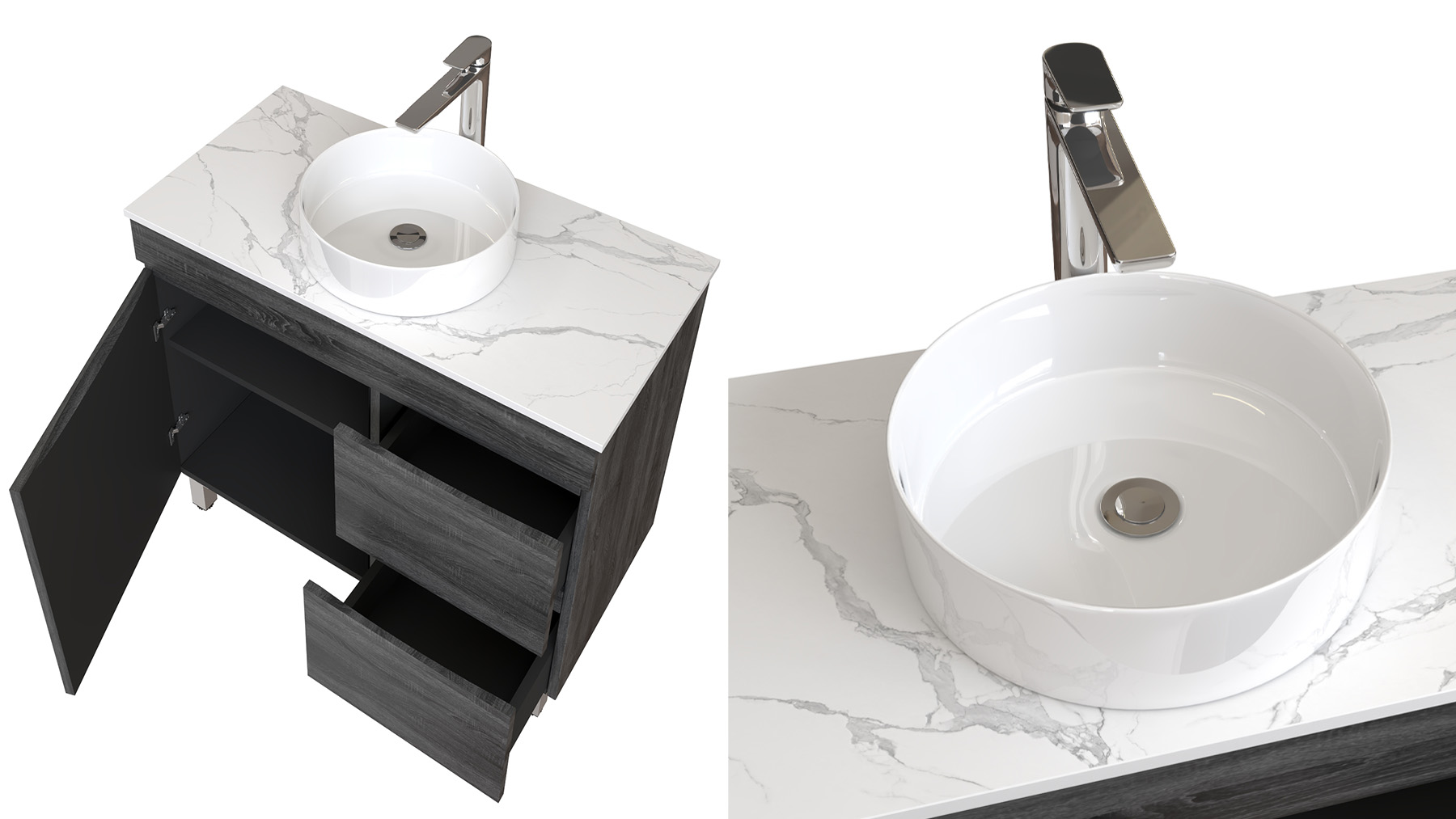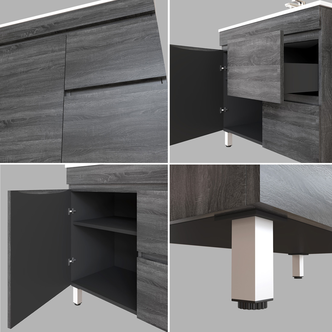 900mm Dark Grey MDF Bathroom Vanity Right Drawers Free Standing Cabinet Only